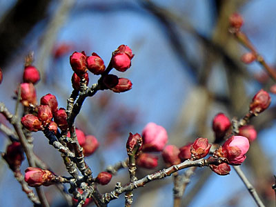 1/26 中央公園での梅林を見に出掛けました。寒紅梅のつぼみがようやく膨らんできたようです。