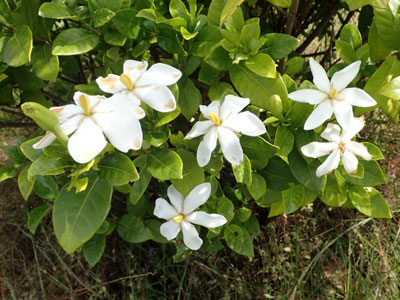 枝先から芳香のある白い花を1個づつ付ける。 クチナシ果実の様子はこちらに。 |