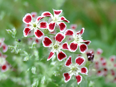 総苞片の中心に黄緑色の小さな花が15〜20個集まって 球形の頭状花序をつけている。花弁は4個、おしべ4個。 |
