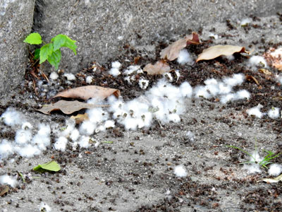 落果した棉毛(中に種子) |