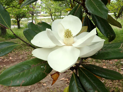 5/29 中央公園内ではタイザンボクに白い大きな花が咲きだしていました。