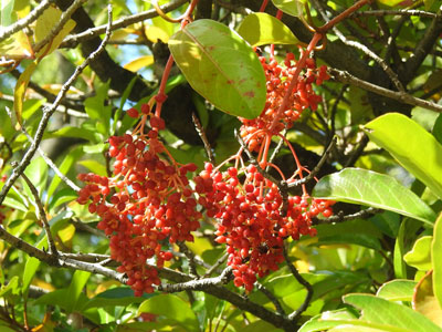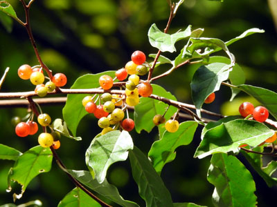 8/28 中央公園では サンゴジュの果実が赤く成熟してきました