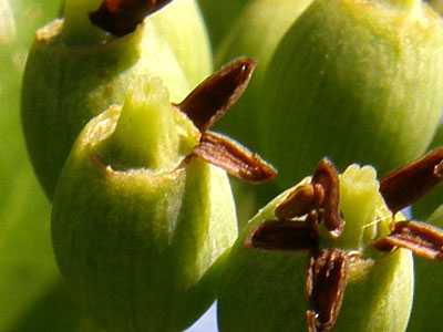 果実は非常に小さく約3mm、稜角のあるゆがんだ扁球形で2本の花柱も残って、見えていました。 |