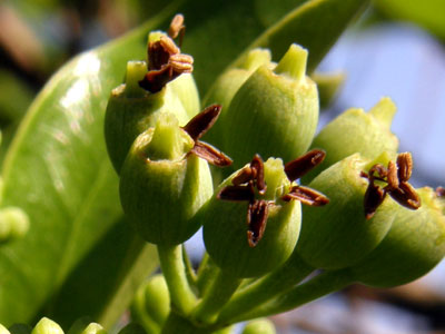 8/26 中央公園ではカクレミノの花が咲きだしていました。十数年前に撮影した雌しべの花柱、果実の画像がありました。