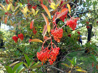 | 果実は偽果、直径6〜8mmの球形〜楕円球形。9月〜11月に赤く熟す。 | |