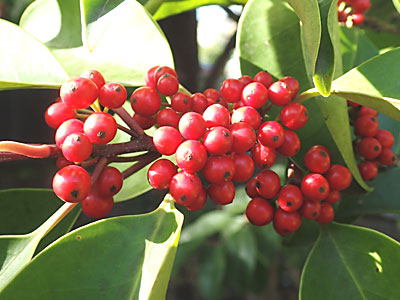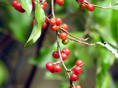 | 果実は直径6〜8mmの球形〜楕円球形。9月〜11月に赤く熟す。 | |