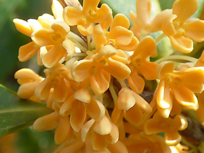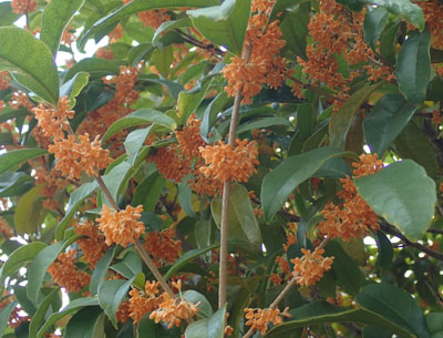 | 葉腋に橙黄色の小さい花を束生し、強い芳香がある。 | |