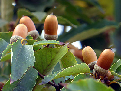 | ドングリは長さ約2cmの長楕円形、殻斗は深い杯型、 その鱗片はうろこ状 | |