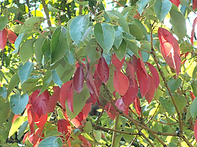 11/17 中央公園ではクスノキの古葉が紅葉して、緑葉とのコントラストが見事でした。