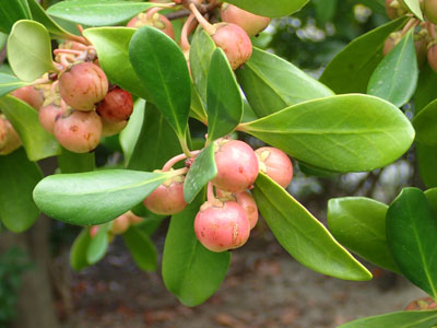 果実は直径6〜8mmの球形〜楕円球形、 液果状の核果。 |