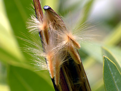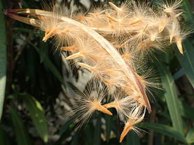 キョウチクトウの種子 種子は約7mm、冠毛は約14mm 2005/2/23撮影 |