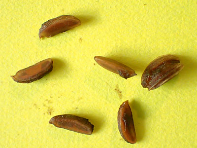 果実は核果、球形で長さ6mmほど。 中に核が6個入っていた。核は3角状卵形で長さ約5mm。 |