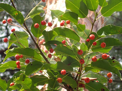 芦屋の山道 奥池、イモリ谷付近ではソヨゴの木に出会う機会が多いです。