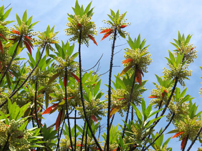 常緑樹だが紅葉した葉を一年中つけている |