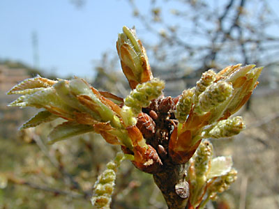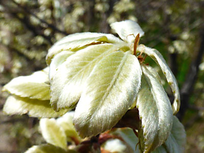 | 新葉と雄花序が展開し始め。 | 絹毛が柔らかな新葉 |