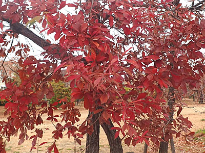 | 黄葉するコナラをよく見ますが ここでは真っ赤に紅葉していました。 | |