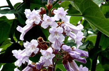 | ここで見たキリの花にはたくさんの斑点が見られました。 | |