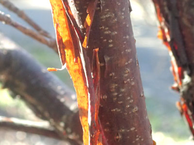 樹皮が薄く剥がれ落ちる。 後は淡褐色になる。 |