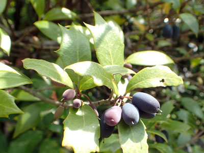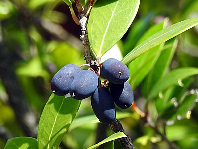 | 果実は核果。長さ1.2〜1.5cmの楕円形。黒紫色に熟す。 | |