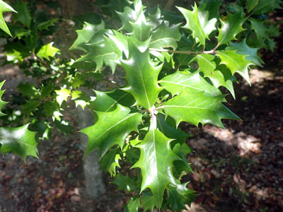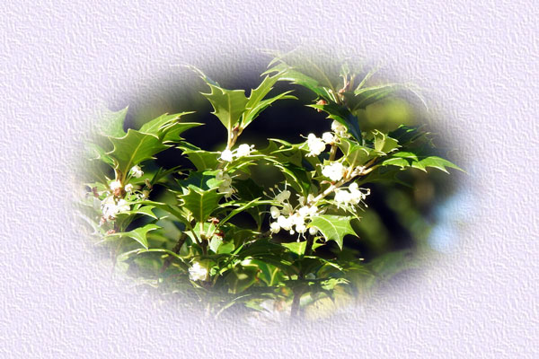 西浜公園や中央緑道(緑町)にはヒイラギの木が植えられています。11月〜12月に、葉腋に香りのよい白い花が束生しています。
