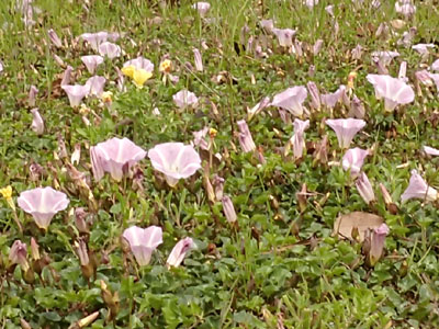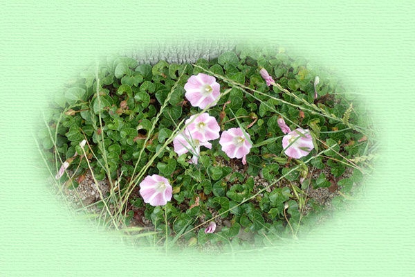 | 浜辺の端っこで ハマヒルガオの花が少しだけ咲いていました。 | |