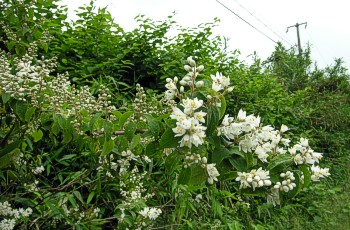 5/31 豊岡市方面へ 。平地でも山地でもウツギ(卯の花)の白い花が咲き出す季節になってきました。