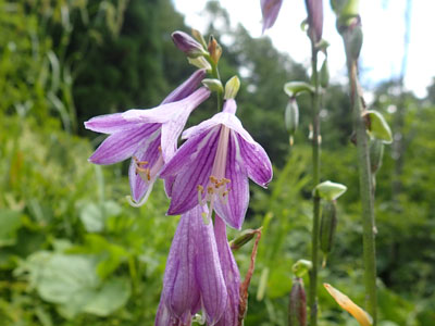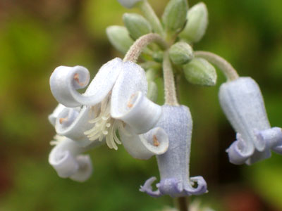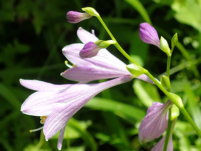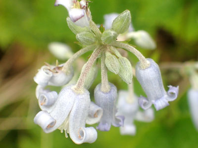 | 花は淡紫色で、長さ4〜5cmで内側に濃い紫色の脈が目立つ | |