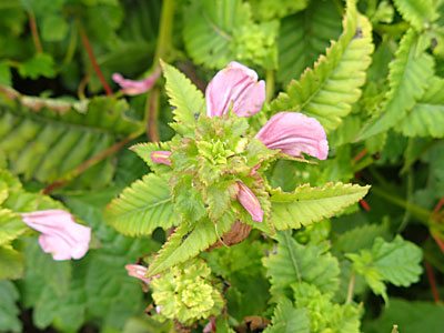 花はねじれた2唇形になっている。 葉はヘリによくそろった鋸歯が見られる。 |