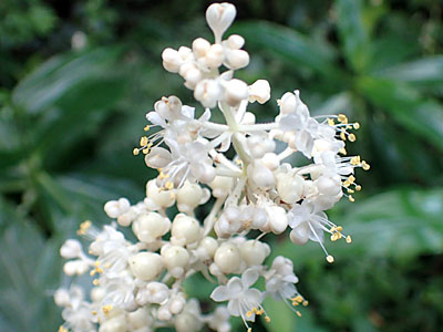 | つぼみの時の花序 | 花は白くて径8mm、長さ5〜10mmの柄がある。 |