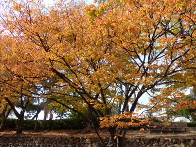 メタセコイヤの黄葉やイロハモミジの紅葉、イイギリの赤い実など美しく輝いていました。