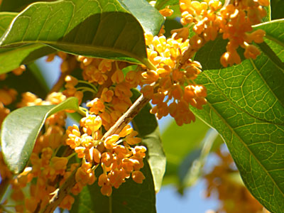 | 葉腋に橙黄色の小さい花を束生し、強い芳香がある。 | |