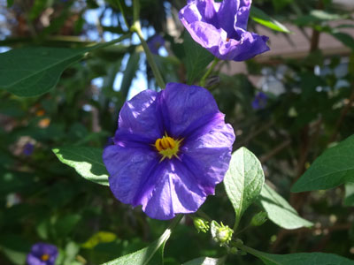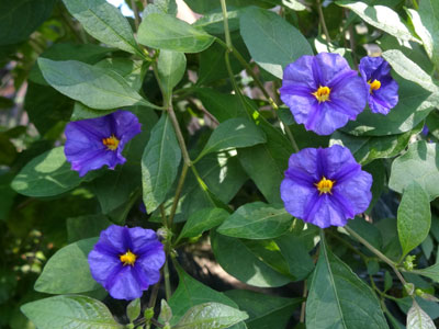 11/3 西宮市夙川河口近くのマンションの庭でナス科の紫色の美しい花を見ました。どうやらソラナム・ラントネッティという木の花のようでした。