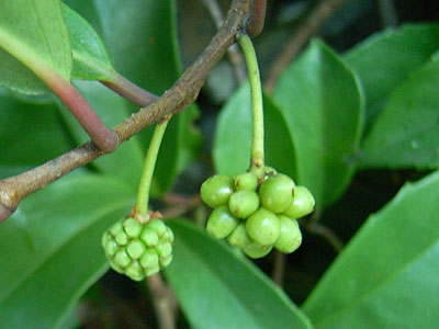 | 果実は液果。長さ1.2〜1.5cmの楕円形。 | |
