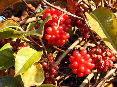 サネカズラ(マツブサ科)<別名ビナンカズラ> 有馬富士公園 2020/1/2撮影 |