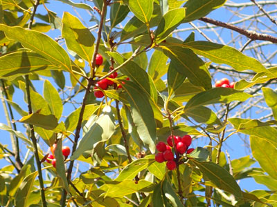 12/30 兵庫県稲美町の加古大池でシロダモに赤い果実がたくさんできていました。