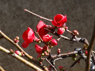 2/12 浜風町ではボケの花がちらほら咲き出してきました。