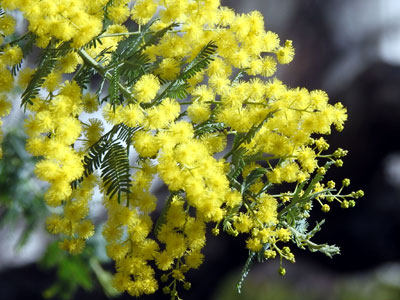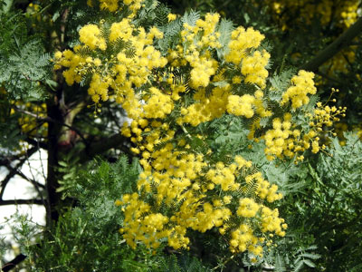 枝先に黄色の頭状花序を総状をつける。 樹木ウォッチング フサアカシアのページもご覧ください。 |