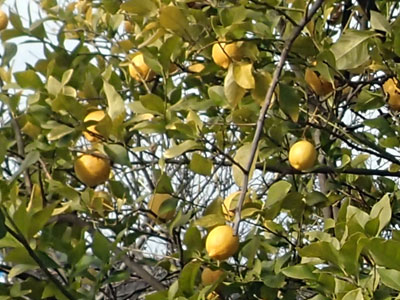 1/19 潮見町の潮風大橋のたもとではレモンの実がたくさん出来ていました。