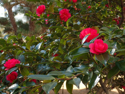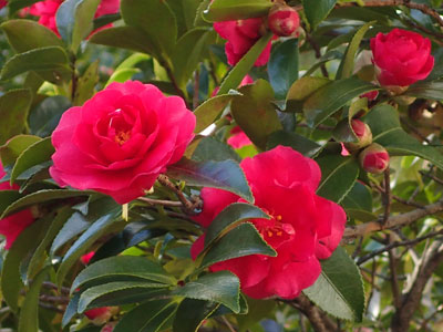 1/19 高浜町団地ではサザンカの花が鮮やかに咲き誇っていました。