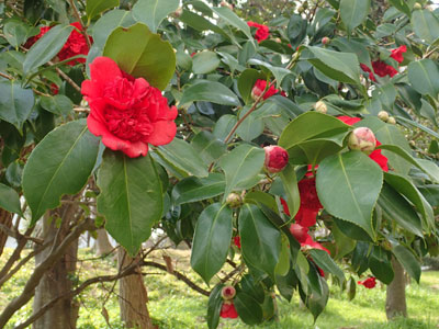 2/24 高浜団地の庭では八重咲きツバキが一斉に咲き出していました。