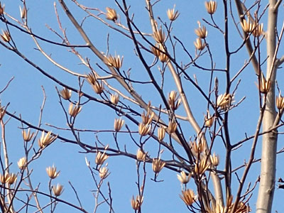 1/18 中央緑道のキリの花芽が丸く膨らんできていました。