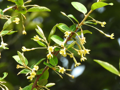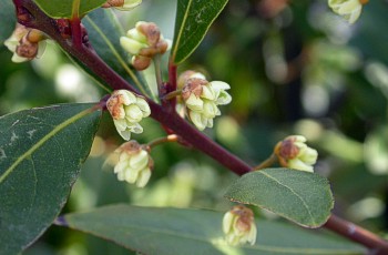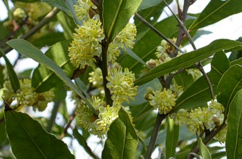 4/9 ゲッケイジュ(雌雄別株)の雌花、雄花それぞれを見ることが出来ました。