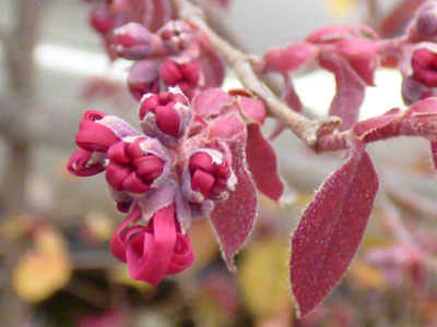 | ベニバナトキワマンサク(マンサク科) 浜風町 2015/4/4撮影 | |