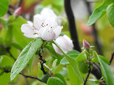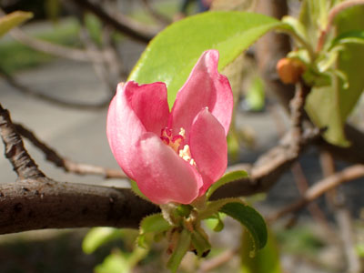 4/9 芦屋浜団地の庭ではカリンの花が咲き出していました。