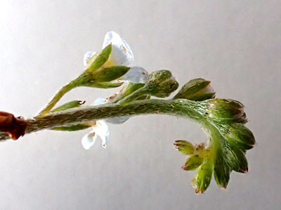| 花序の先はくるりと巻き、それがほどけながら順に開花する。 | |