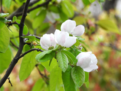 4/6 高浜団地の庭ではマルメロの花がやさしく咲き出していました。