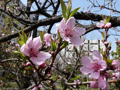 芦屋シーサイドタウン内で 美しいモモの花が見られるのは稀です。 |