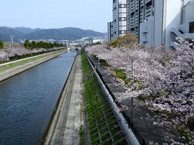 4/5 宮川水路の桜並木のサクラも一斉に咲き出してきました。