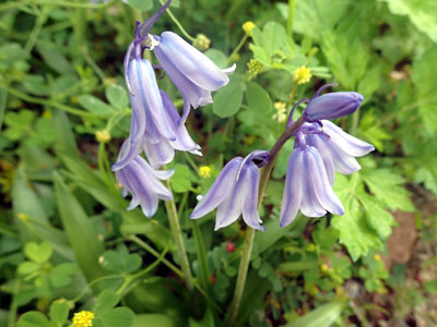 4/14 高浜団地の庭で釣鐘を思わせる薄紫色の花が咲き出していました。ツリガネズイセン(ヒアシンソイデス・ヒスパニカ)という名の植物でした。