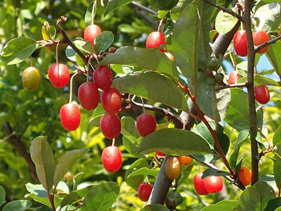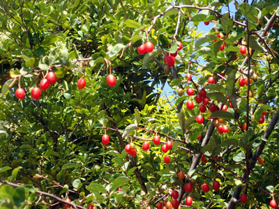 4/3 シーサイドタウン内ではサクラは5〜8分咲きに。ナワシログミの果実がたくさんできて赤く熟してきました。